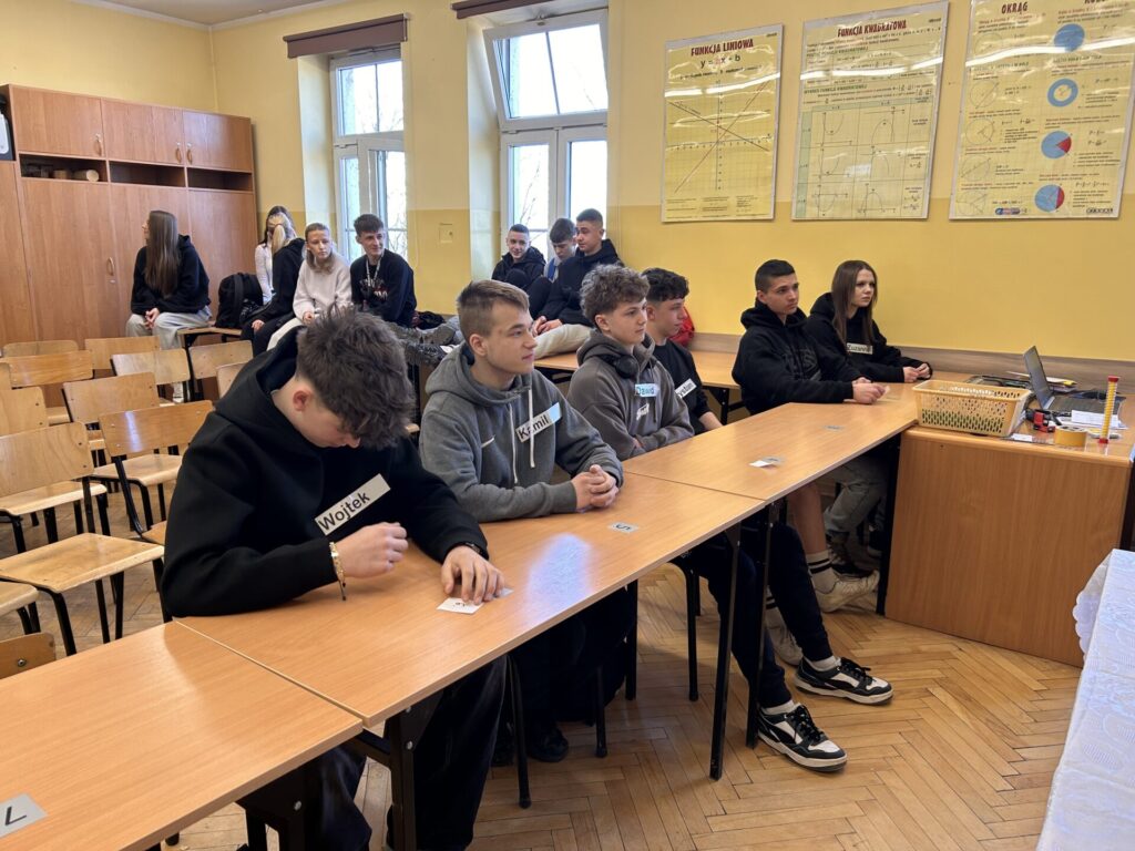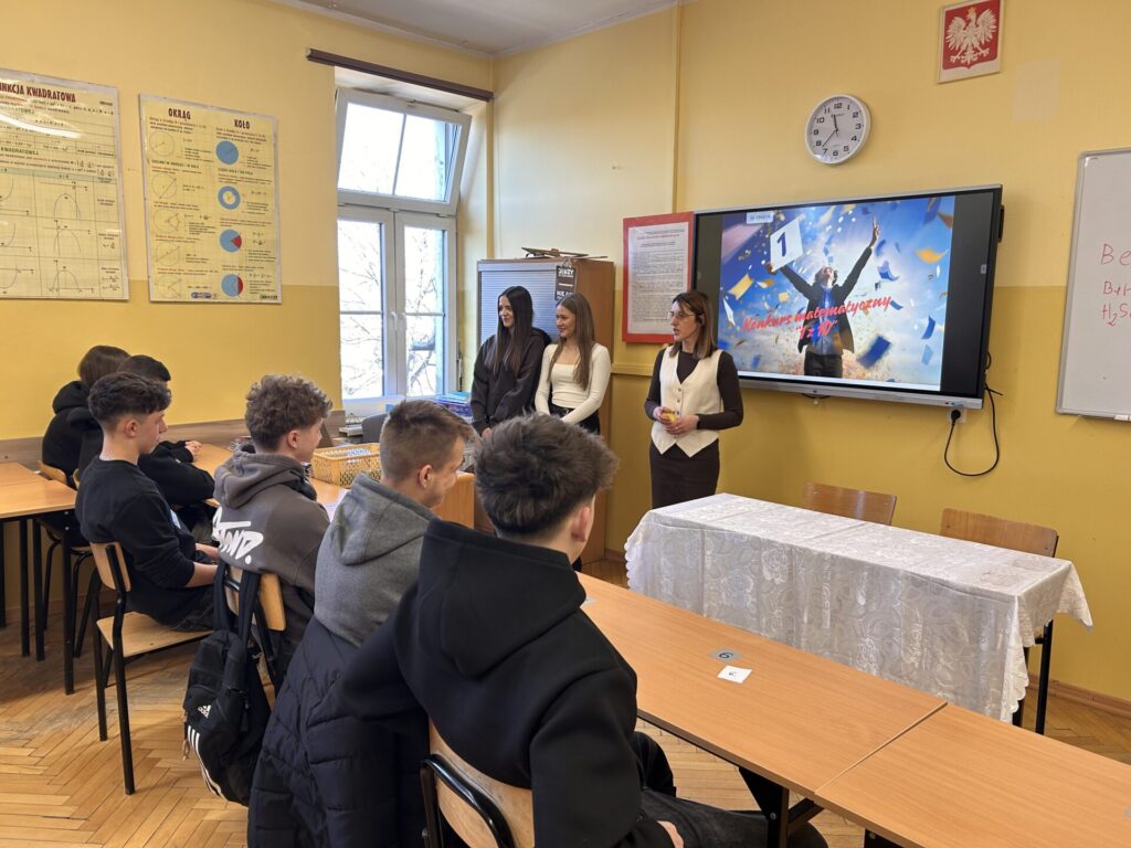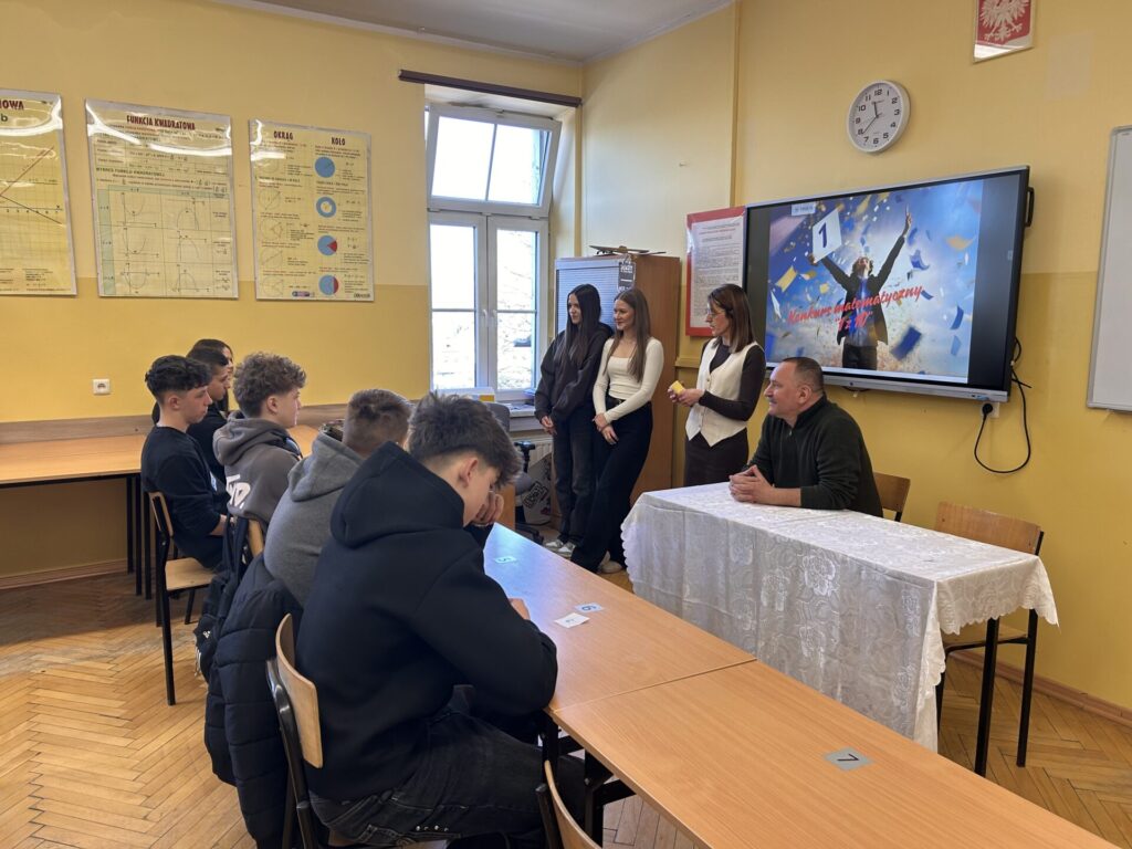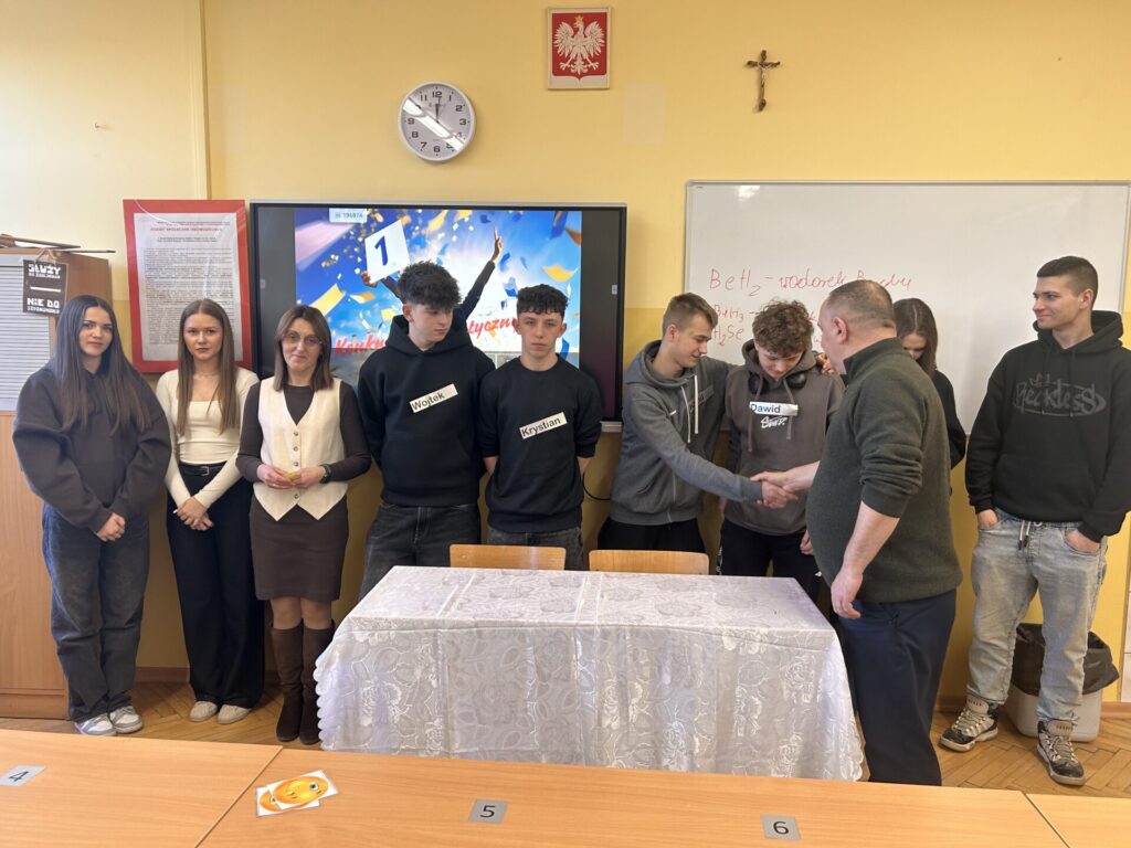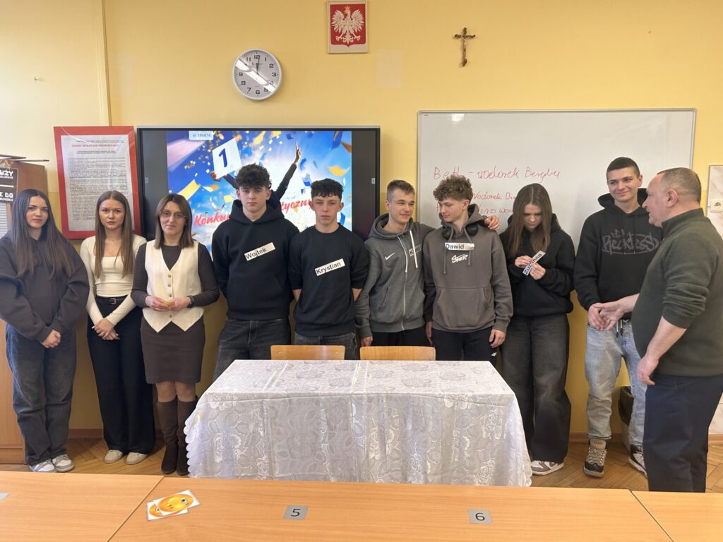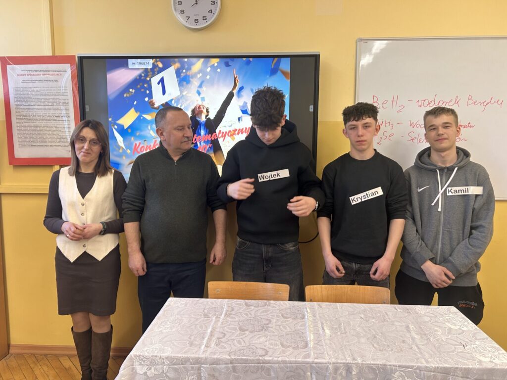 03 marca 2025r. odbyła się piąta edycja Szkolnego Konkursu Matematycznego „1 z 10”, wzorowanego na znanym konkursie telewizyjnym o tej samej nazwie. Zwycięzcą został Kamil Słowikowski, uczeń klasy IIc, II miejsce zdobył Wojciech Górowski z klasy Ic, a III Krystian Poparda z klasy Ib. Pozostali uczestnicy: Zuzanna Pych – klasa Ic, Krzysztof Jawor – klasa IIIc, Dawid Pałka – klasa IIId. Wszystkim uczestnikom dziękujemy za udział, finalistom serdecznie gratulujemy! Pamiątkowe dyplomy oraz nagrody zostaną wręczone w późniejszym terminie. Organizatorem konkursu była p. Jadwiga Sopalska – nauczycielka matematyki.