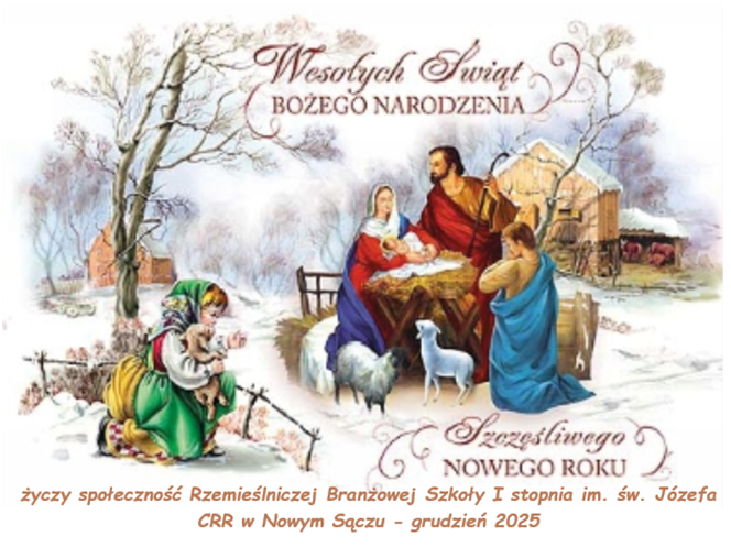 Wszystkim pracownikom Szkoły, Cechu, Izby, Rzemieślnikom, Rodzicom i naszym kochanym Uczniom składamy najpiękniejsze życzenia. Cudownych Świąt Bożego Narodzenia, samych pieknych dni w Nowym Roku 2026.
