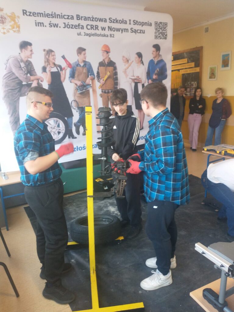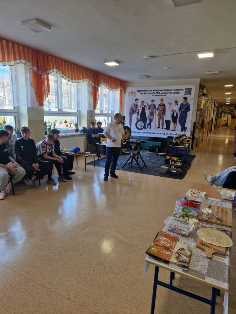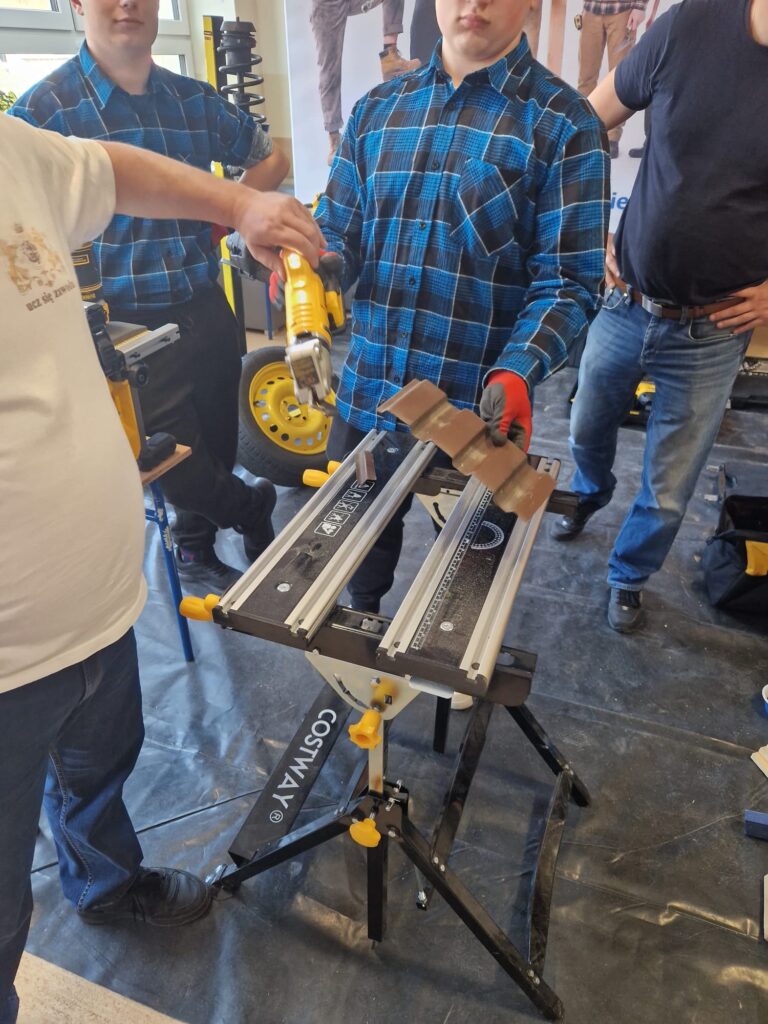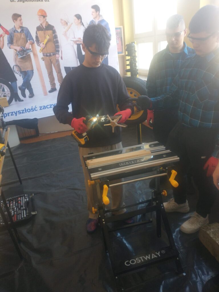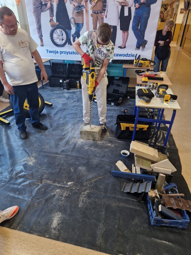 Uczniowie naszej szkoły pod opieka nauczycieli zorganizowali warsztay branżowe w szkołach podstawowych w Podolu i Przydonicy w celu promocji kształcenia zawodowego oraz zaprezentowania oferty edukacyjnej szkoły. W wydarzeniu uczestniczyli uczniowie kierunków: gastronomicznego, fryzjerskiego, mechanicznego, budowlanego oraz stolarskiego. Podczas warsztatów uczniowie mieli okazję zaprezentować swoje umiejętności praktyczne młodszym kolegom i koleżankom. W ramach zajęć odbyły się pokazy przygotowywania potraw, stylizacji fryzur, a także prezentacje prac z zakresu mechaniki, budownictwa i stolarstwa. Szczególnym elementem wydarzenia był pokaz zastosowania narzędzi marki DeWalt®, który wzbudził duże zainteresowanie uczestników. Warsztaty spotkały się z bardzo pozytywnym odbiorem w obu szkołach. Uczniowie szkół podstawowych chętnie angażowali się w proponowane aktywności, zadawali pytania i wykazywali duże zainteresowanie prezentowanymi zawodami. Wydarzenie było również doskonałą okazją do promocji szkolnictwa branżowego, narzędzi najnowszej generacji firmy DeWalt® oraz zachęcenia młodzieży do wyboru ścieżki kształcenia zawodowego.