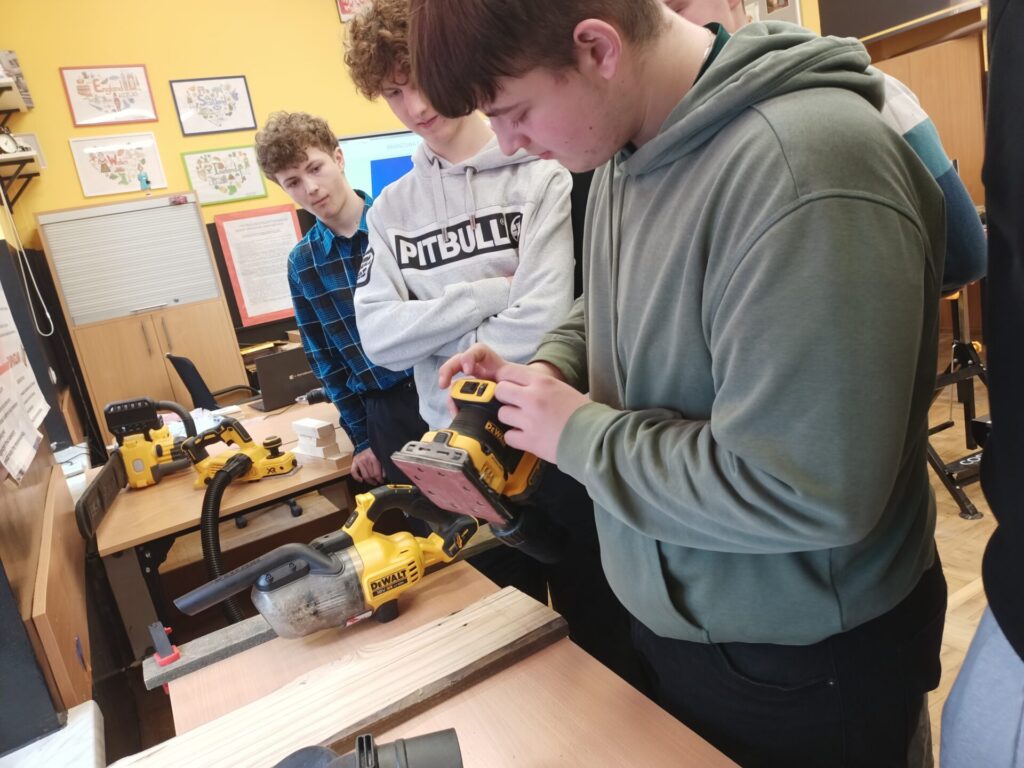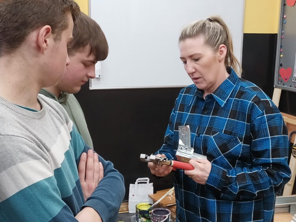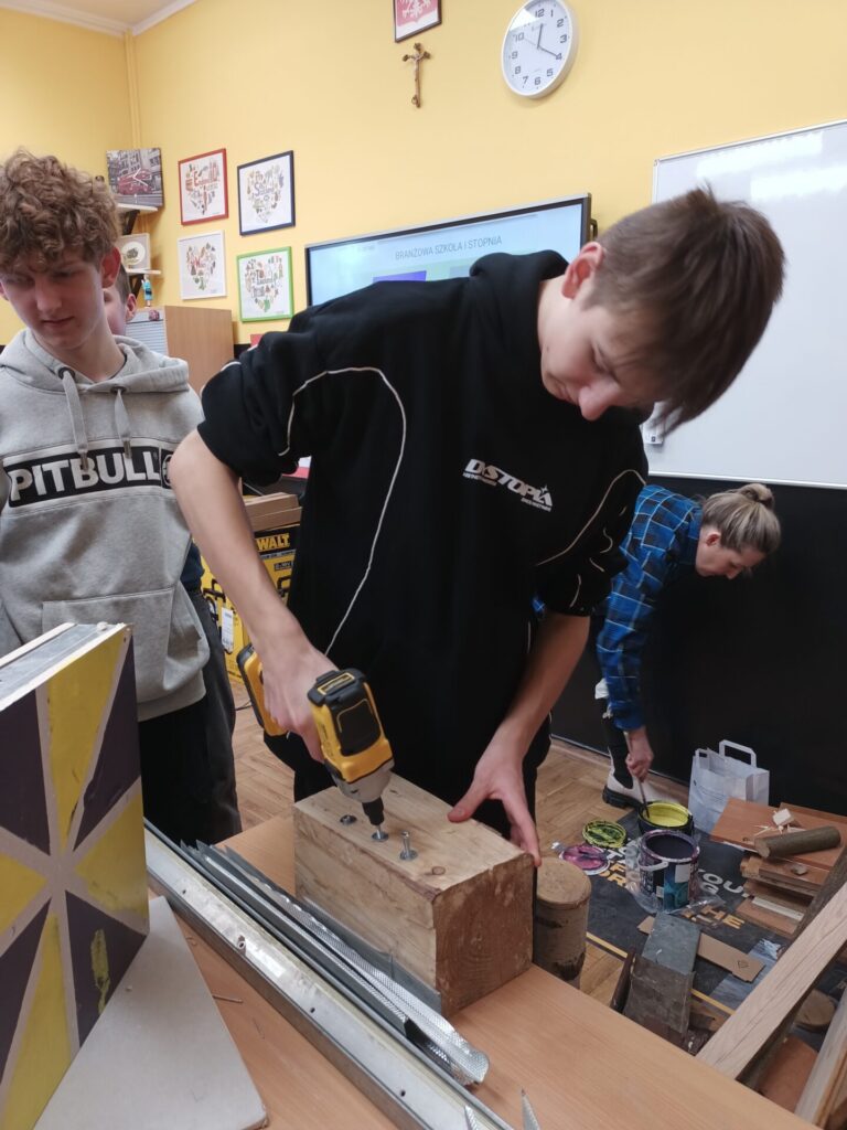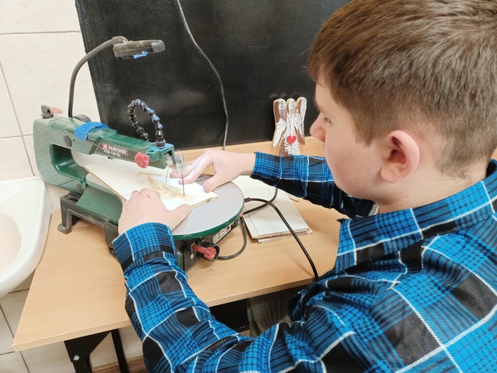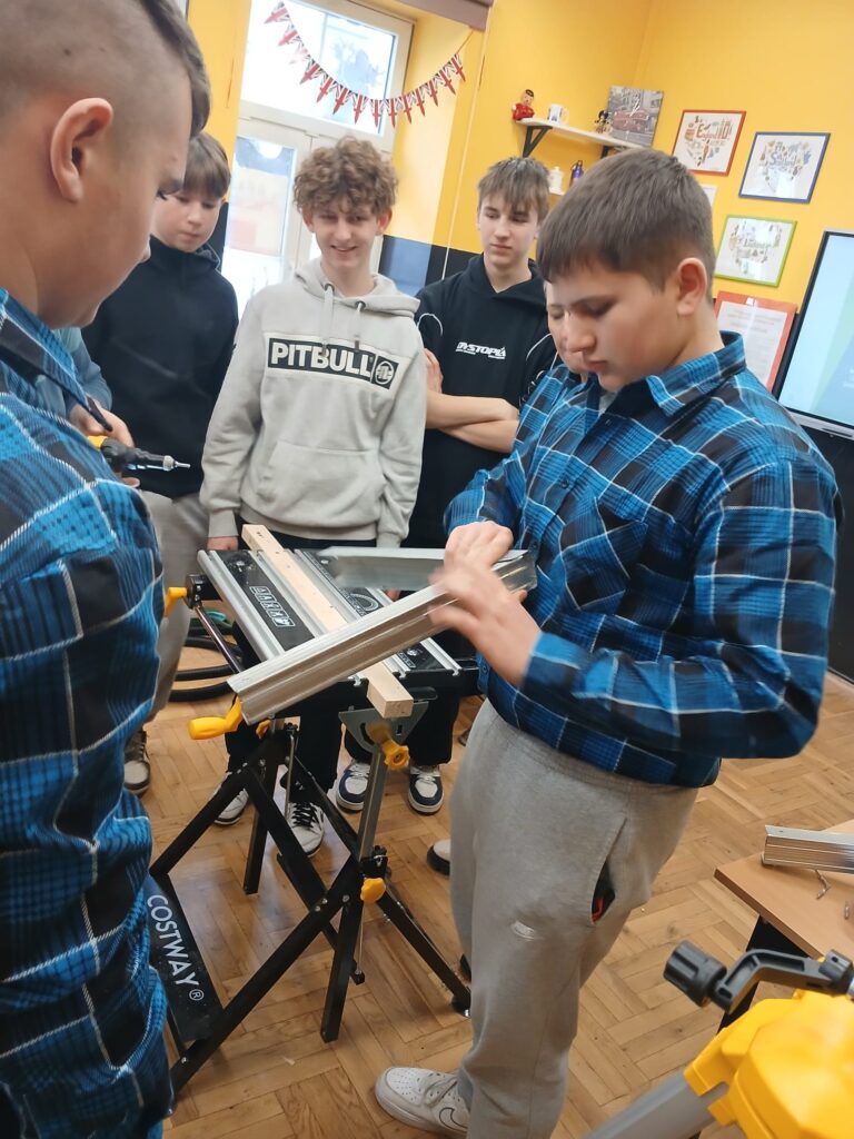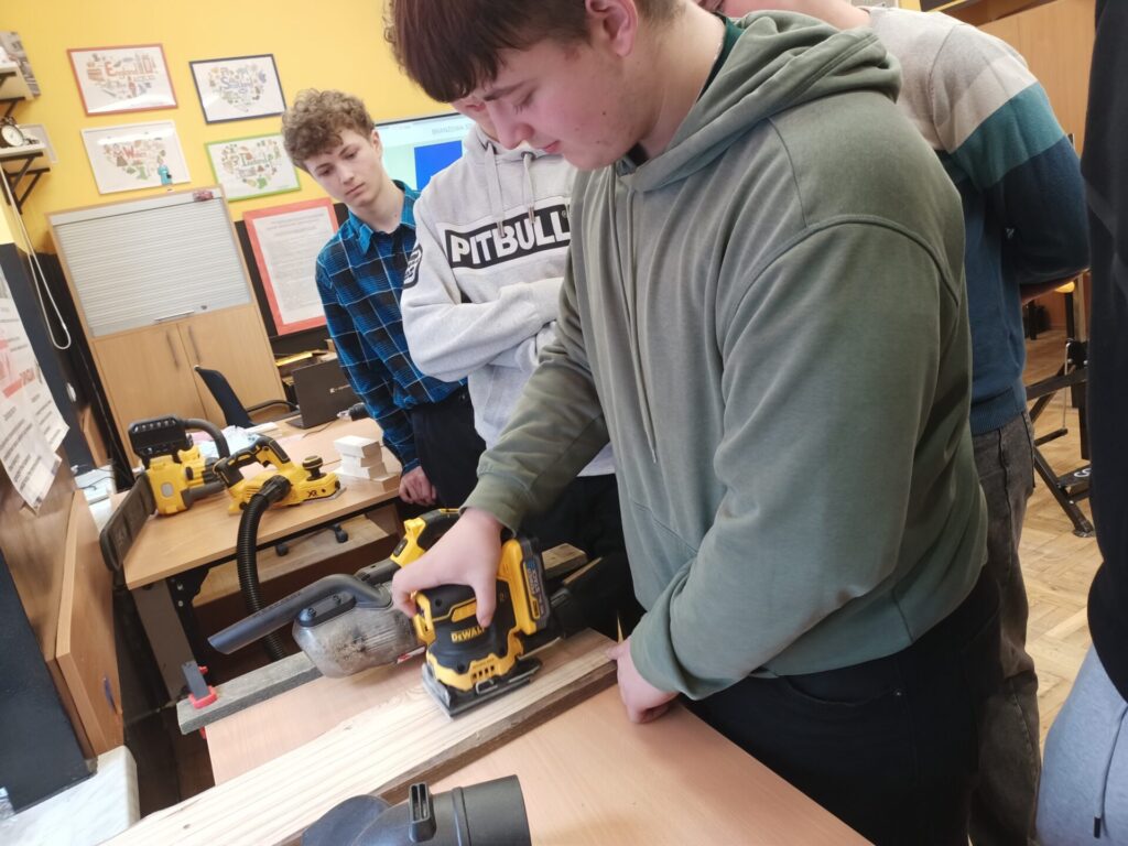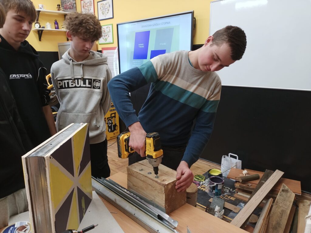 stolarstwo – na tym stanowisku wykonano proste prace stolarskie z zastosowaniem technik obróbki drewna, obsługiwano narzędzia, tj. wypalarka laserowa, wyrzynarka włosowa, frezarka, bruzdownica, strug elektryczny, pilarka łańcuchowa.