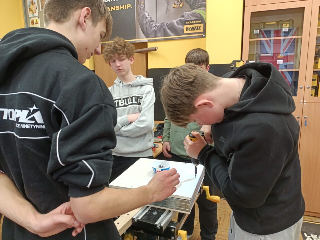 Pod opieką nauczycieli młodzi mogli aktywnie pracować na stanowiskach warsztatowych, korzystać z narzędzi i sprzętu oraz zdobyć pierwsze doświadczenia zawodowe.