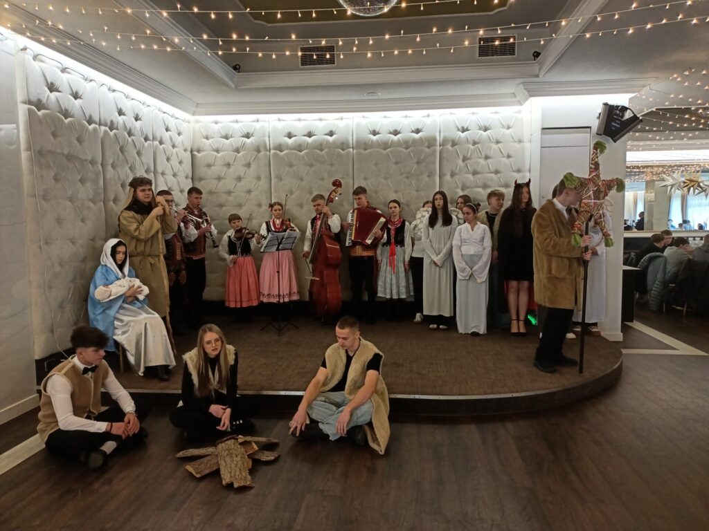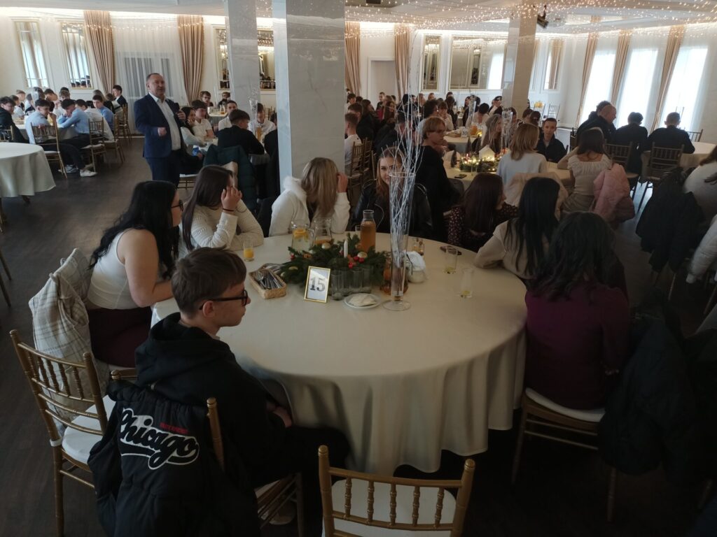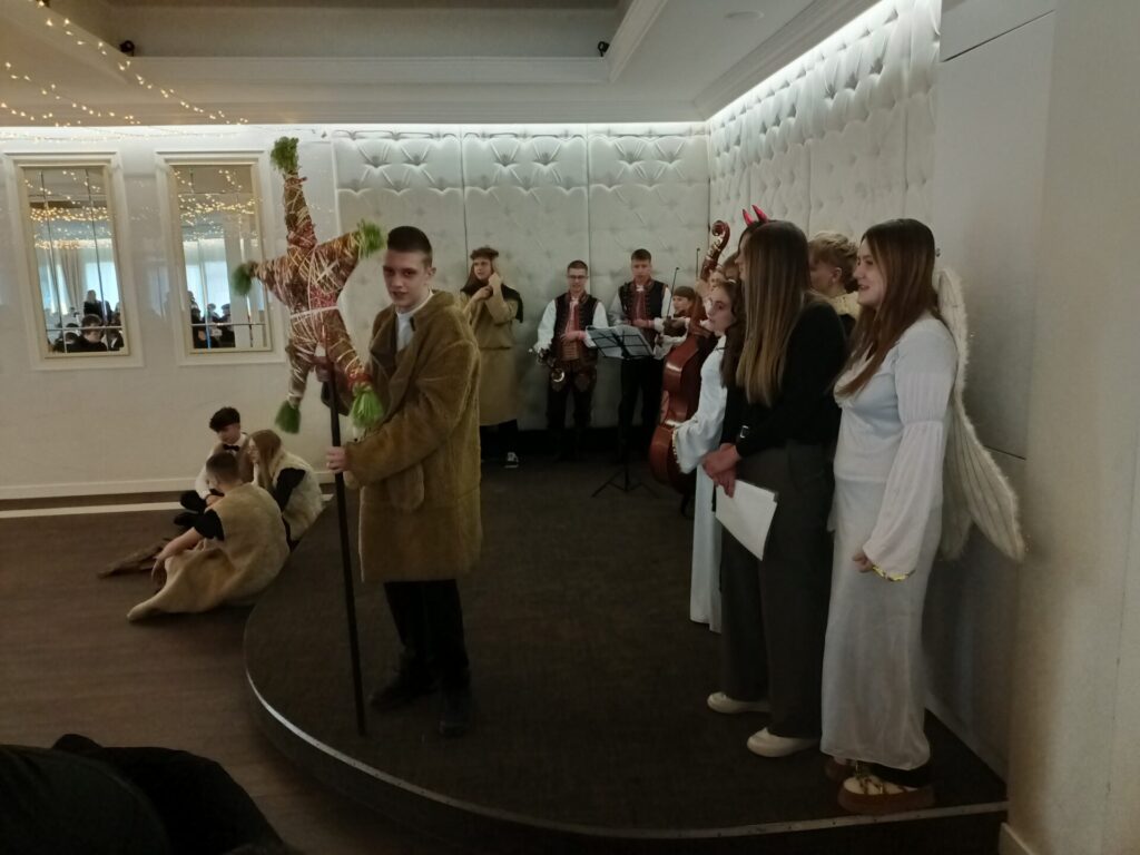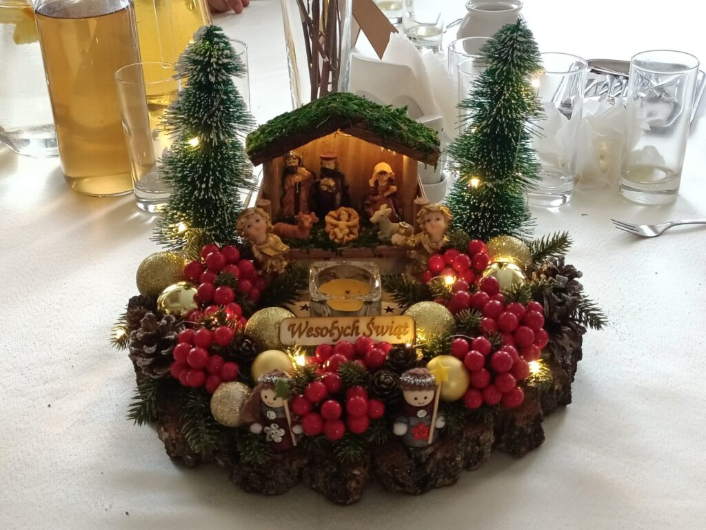 Wczoraj wszyscy zasiedliśmy do wspólnego stołu wigilijnego. To uroczyste spotkanie uczniów i nauczycieli odbyło się w lokalu „Casablanka” w Niskowej. Przybyli również kolędnicy z Jasełkami i ze śpiewem. Przy stolikach połamaliśmy się opłatkiem. Jeden stolik, pomimo tego, że nikt przy nim nie siedział, był szczególny. Przypominał o pięknie tradycji i nie zabrakło na nim tradycyjnych elementów. Biały obrus i sianko, pismo święte, opłatek, talerz dla zbłąkanego wędrowca. Pan dyrektor przypomniał, w krótkich słowach, o znaczeniu tych symboli: