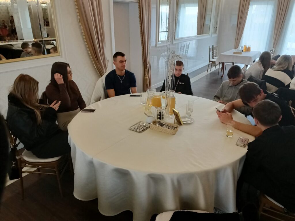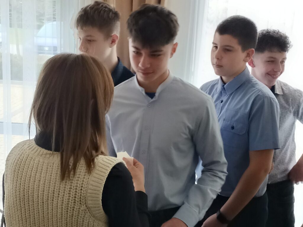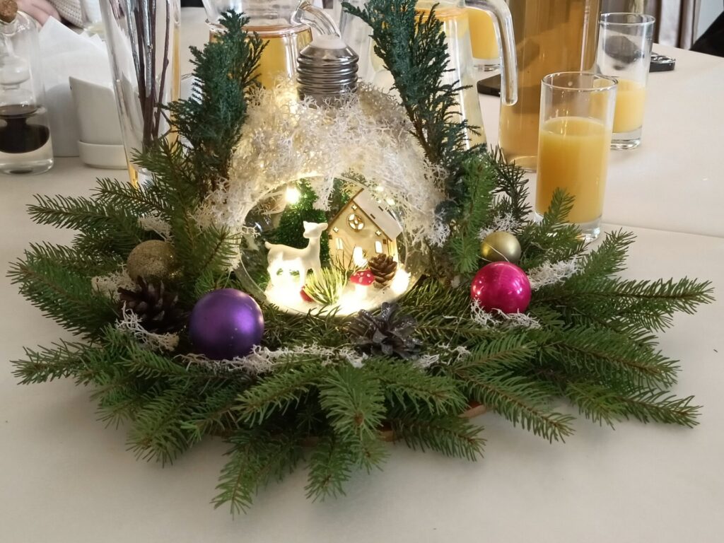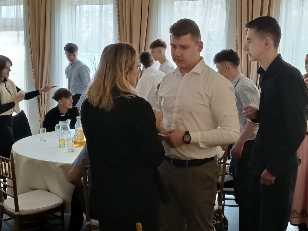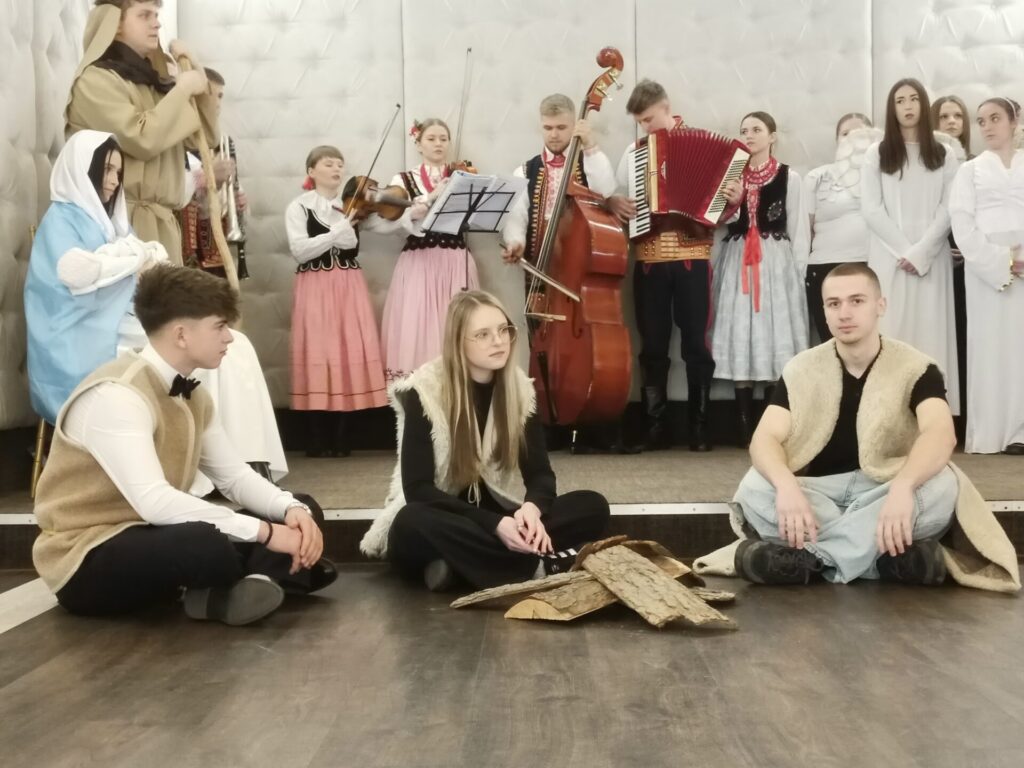 Wczoraj wszyscy zasiedliśmy do wspólnego stołu wigilijnego. To uroczyste spotkanie uczniów i nauczycieli odbyło się w lokalu „Casablanka” w Niskowej. Przybyli również kolędnicy z Jasełkami i ze śpiewem. Przy stolikach połamaliśmy się opłatkiem. Jeden stolik, pomimo tego, że nikt przy nim nie siedział, był szczególny. Przypominał o pięknie tradycji i nie zabrakło na nim tradycyjnych elementów. Biały obrus i sianko, pismo święte, opłatek, talerz dla zbłąkanego wędrowca. Pan dyrektor przypomniał, w krótkich słowach, o znaczeniu tych symboli:
