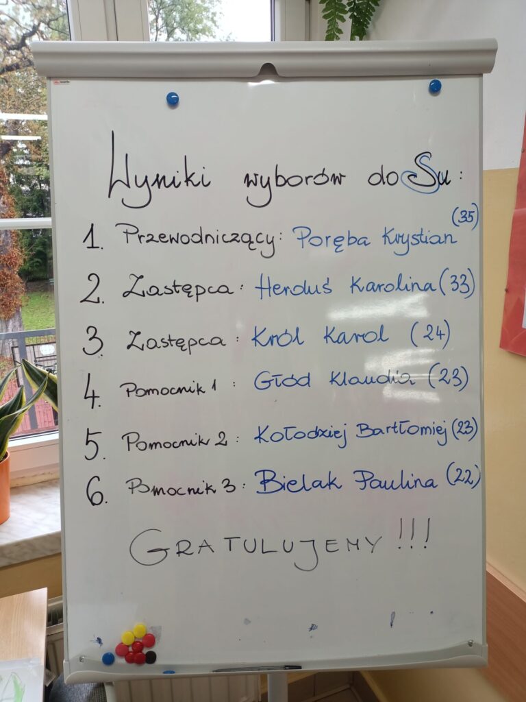 Tygodnie między 13 września a 1 października były bardzo gorące ponieważ uczniowie mieli okazję zgłaszać swoją kandydaturę do Samorządu uczniowskiego. W tym roku wyjątkowo poszerza się ilość uczniów przewidywanych do ról w Samorządzie ponieważ wiele akcji i uroczystości jest na ten rok przewidzianych. Już nie troje ale sześcioro uczniów połączy swoje siły aby wspomagać swoją osobą oraz pomysłowością szkolne wydarzenia. Na 264 uczniów zagłosowało 164 jednak 4 głosy okazały się nieważne.